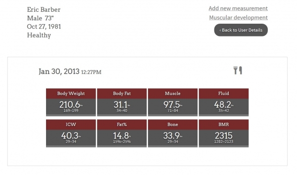 These two numbers get entered into our software under your profile and we get a snap shot of your body composition. It looks something like this: